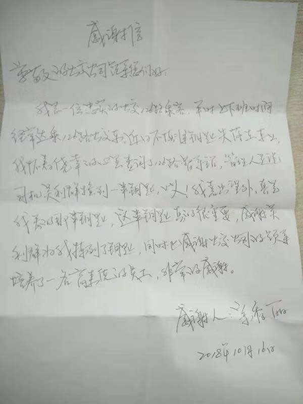2018年10月16日,一公司三隊(duì)126線駕駛員吳立群在車(chē)上撿到一串鑰匙,交給當(dāng)班調(diào)度,事后失主到調(diào)度室尋找,找到了自己的鑰匙,很是感謝,并送來(lái)感謝信一封表達(dá)自己的感激之情。